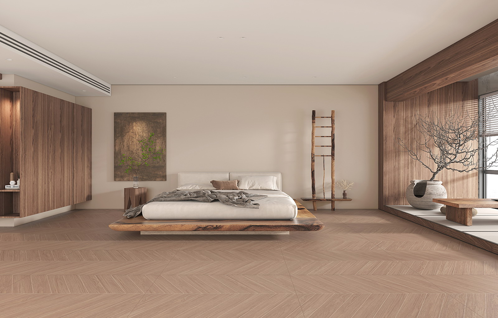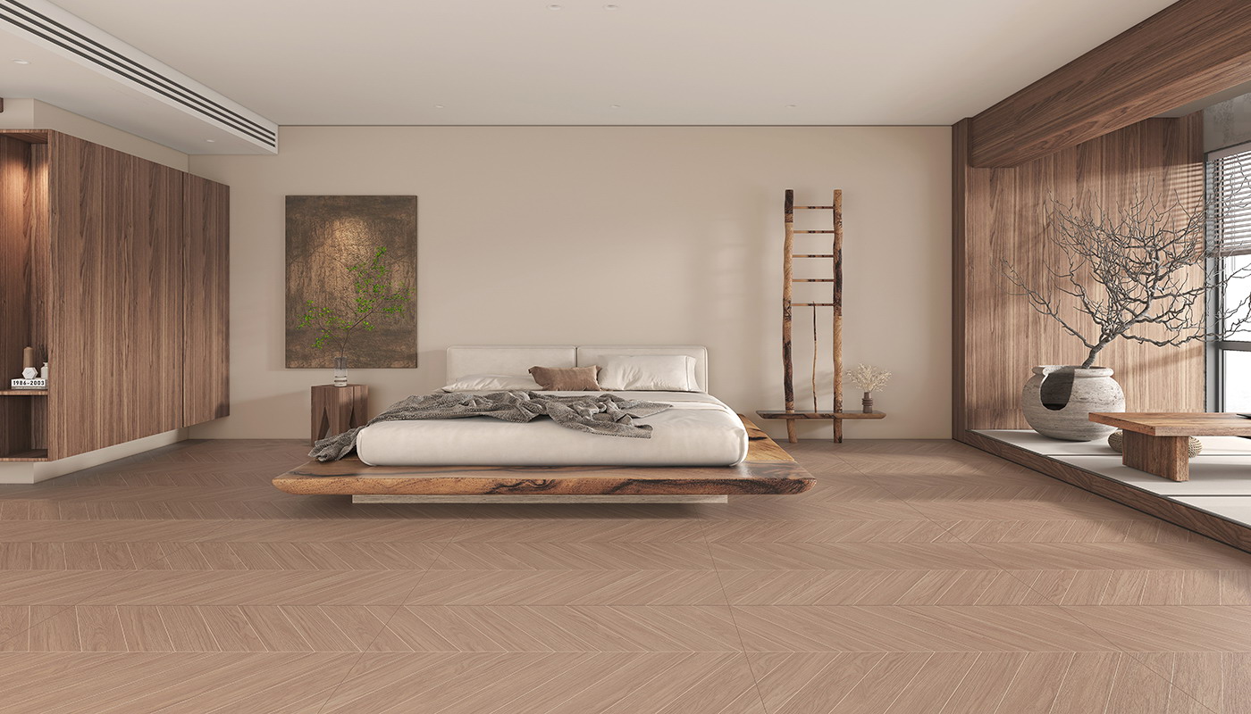 将密致桉木纹理和鱼骨型设计结合